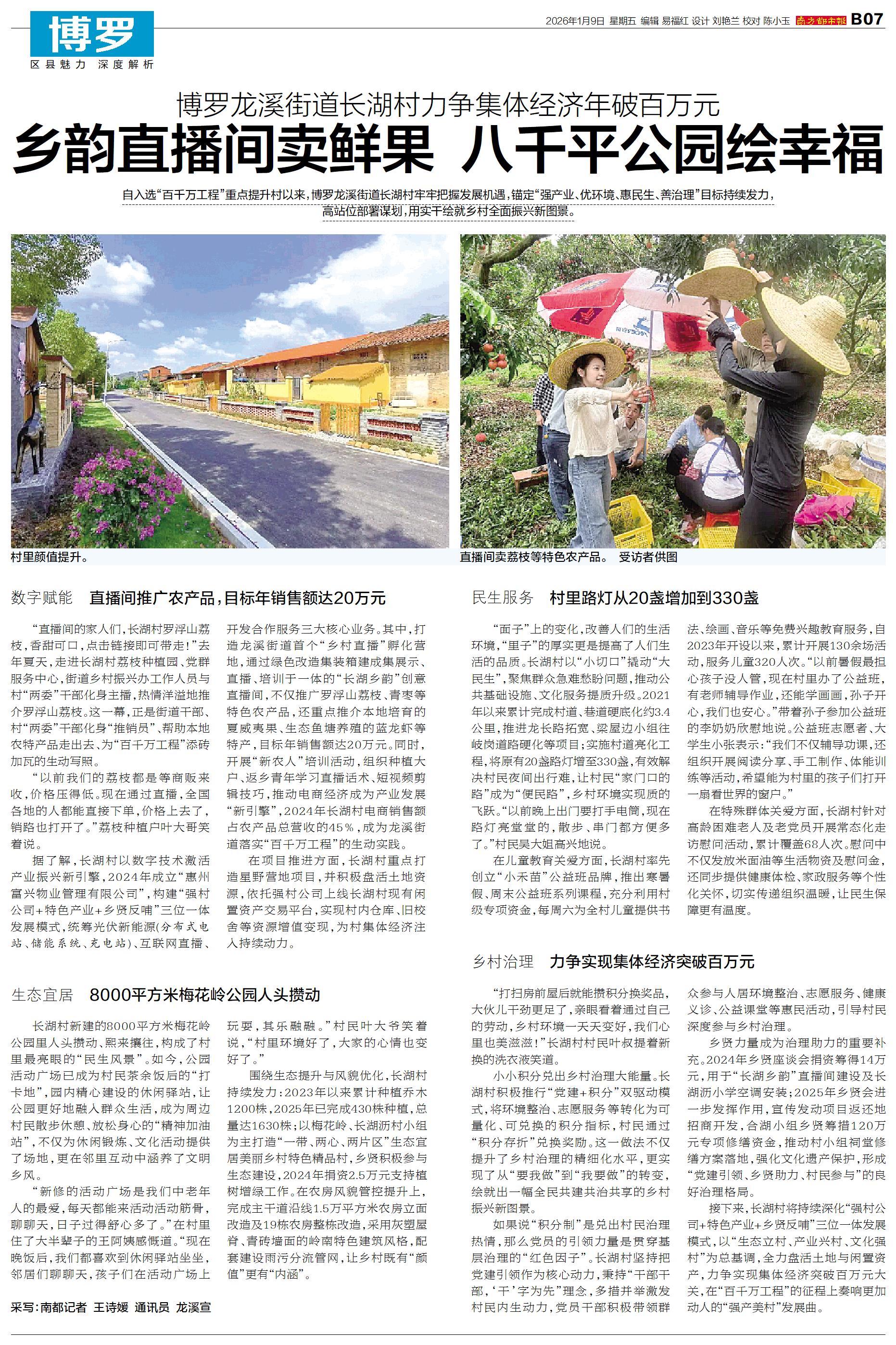 自入选“百千万工程”重点提升村以来,博罗龙溪街道长湖村牢牢把握发展机遇,锚定“强产业、优环境、惠民生、善治理”目标持续发力, 高站位部署谋划,用实干绘就乡村全面振兴新图景。 数字赋能 直播间推