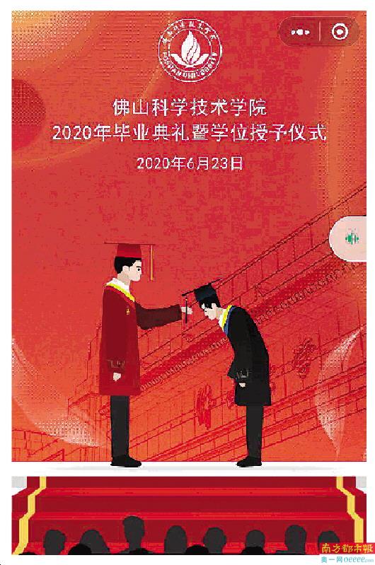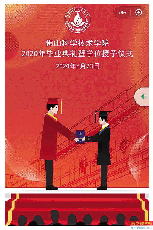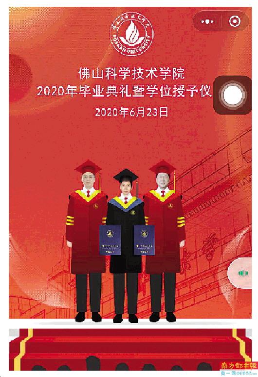 佛科院的云毕业典礼仅是当前高校毕业礼的缩影。受疫情影响,继云上课、云答辩后,佛山不少高校学子也迎来了别开生面的云毕业典礼。往年毕业典礼上有的环节——授勋、表彰、拨穗、演讲、合影,今年都以“云”的方式一一呈现,送给毕业生一个不留遗憾的毕业季。