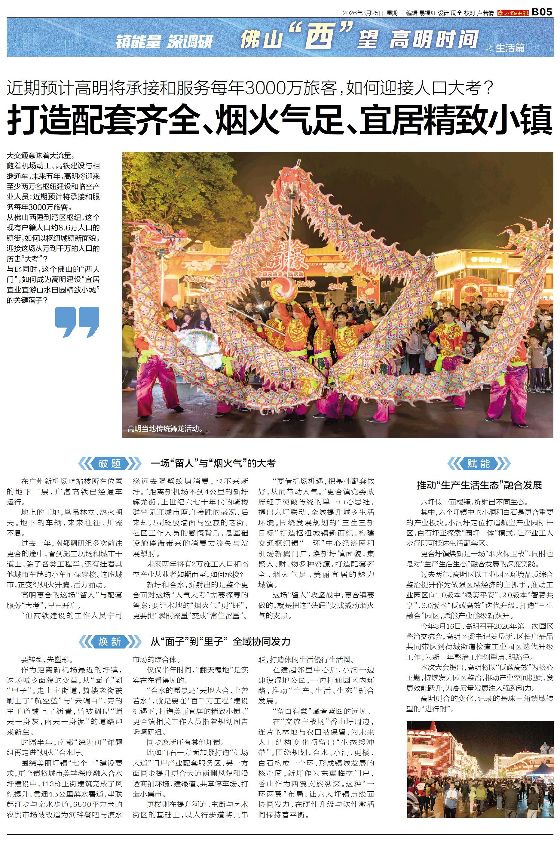 打造配套齐全、烟火气足、宜居精致小镇
