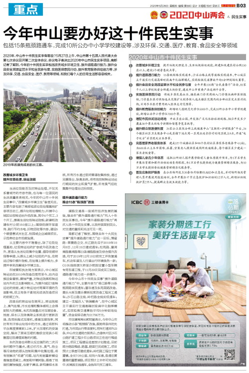2020年,中山市十件民生实事有哪些?5月27日上午,中山市第十五届人民代表大会第七次会议召开第二次全体会议,会议电子表决出2020年中山市民生实事项目。南都记者了解到,今年的十件民生实事包括改善城乡