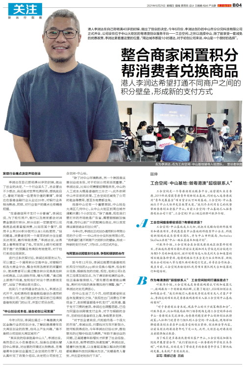 港人李润达在自己即将满40岁的时候,做出了创业的决定。今年6月份,李润达创办的中山市分分兑科技有限公司正式开业,公司设在位于中山火炬区的粤港澳创业服务平台——工合空间。之所以选择中山,除了能享受一