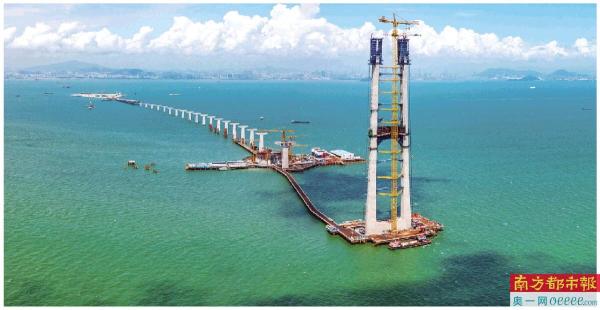 今年6月,深中通道伶仃洋大桥东索塔封顶。 新华社发
