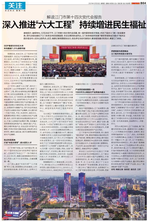 赓续前行,奋楫争先。12月28日下午,江门市第十四次党代会闭幕,新一届市委领导班子亮相,开启了谋求江门新一轮发展序曲。党代会报告描绘了江门未来五年的发展蓝图,在会议期间形成热议。江门未来将如何发展