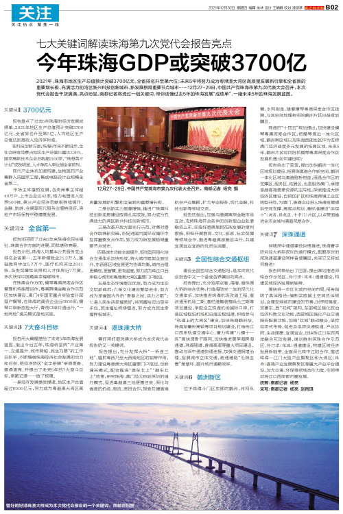 2021年,珠海市地区生产总值预计突破3700亿元,全省排名升至第六位;未来5年将努力成为粤港澳大湾区高质量发展新引擎和全省新的重要增长极、充满活力的湾区新兴科技创新城市、新发展格局重要节点城市…