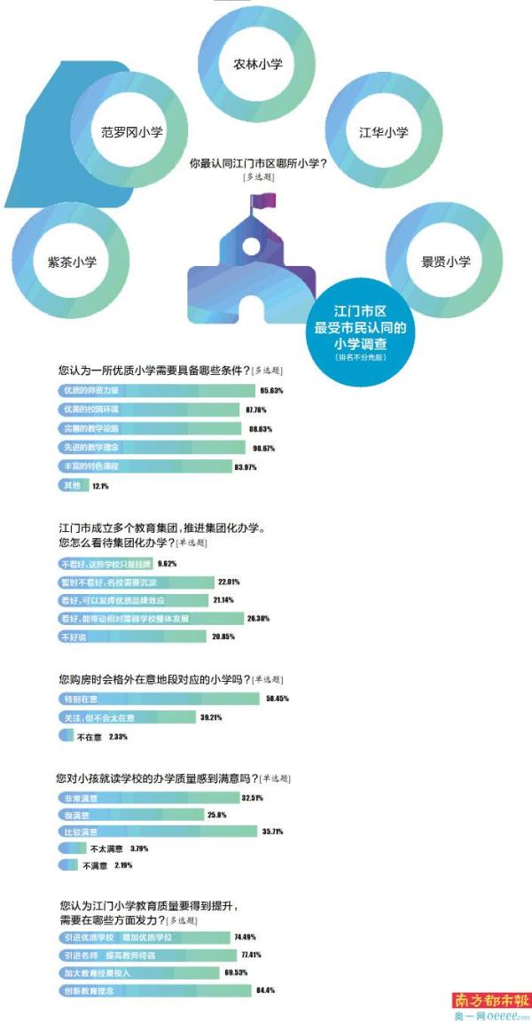 近年来,江门大力发展义务教育,新建、扩建了一批优质学校,优质学位不断增加,成立紫茶小学教育集团、范罗冈小学教育集团等多个教育集团,教学水平不断提升。那么,在市民看来,一所优质学校需要具备哪些要素,江门市区哪5所小学最受市民认同?