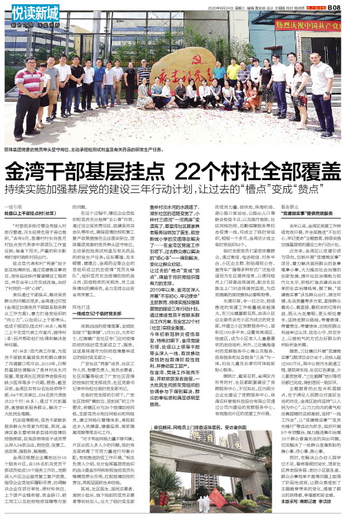 鱼林村淡水河的水疏通了,湖东社区的道路变宽了,小林村三顷河“一河两岸”变漂亮了,草堂湾社区居家养老服务站增加了医生,航空新城小学的交通隐患解决了……在金湾区党建工作引领下,过去群众难以解决的“烦心事”