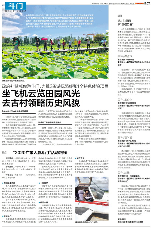补贴名额达2000名,力推2条游玩路线和1个特色体验项目,政府喊你来游珠海斗门,竟有这样的好事?记者从斗门区文广旅体局了解到,为促进文旅消费,帮助珠海斗门旅游市场恢复活力,“2020广东人游斗门”活动