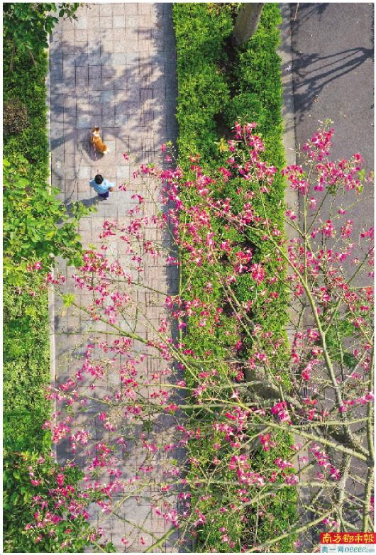 在斗门城区的西堤路、尖峰前路、中兴路等多条道路旁,600多棵异木棉已进入花期,满树姹紫嫣红、竞相绽放的花朵,将冬日的斗门装扮得格外美丽。