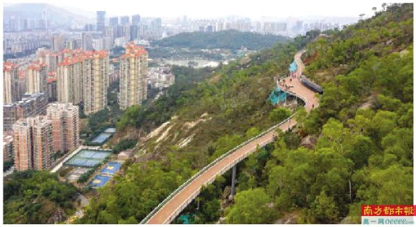 南都记者现场走访获悉,该步道沿山体蜿蜒,入口处设置智能体温检测关卡。悬置于空的步道下面是绿树和野草,红彤彤的山花肆意开放。站在步道上,左侧远望,从吉大到拱北到前山,可以俯瞰大半个珠海。