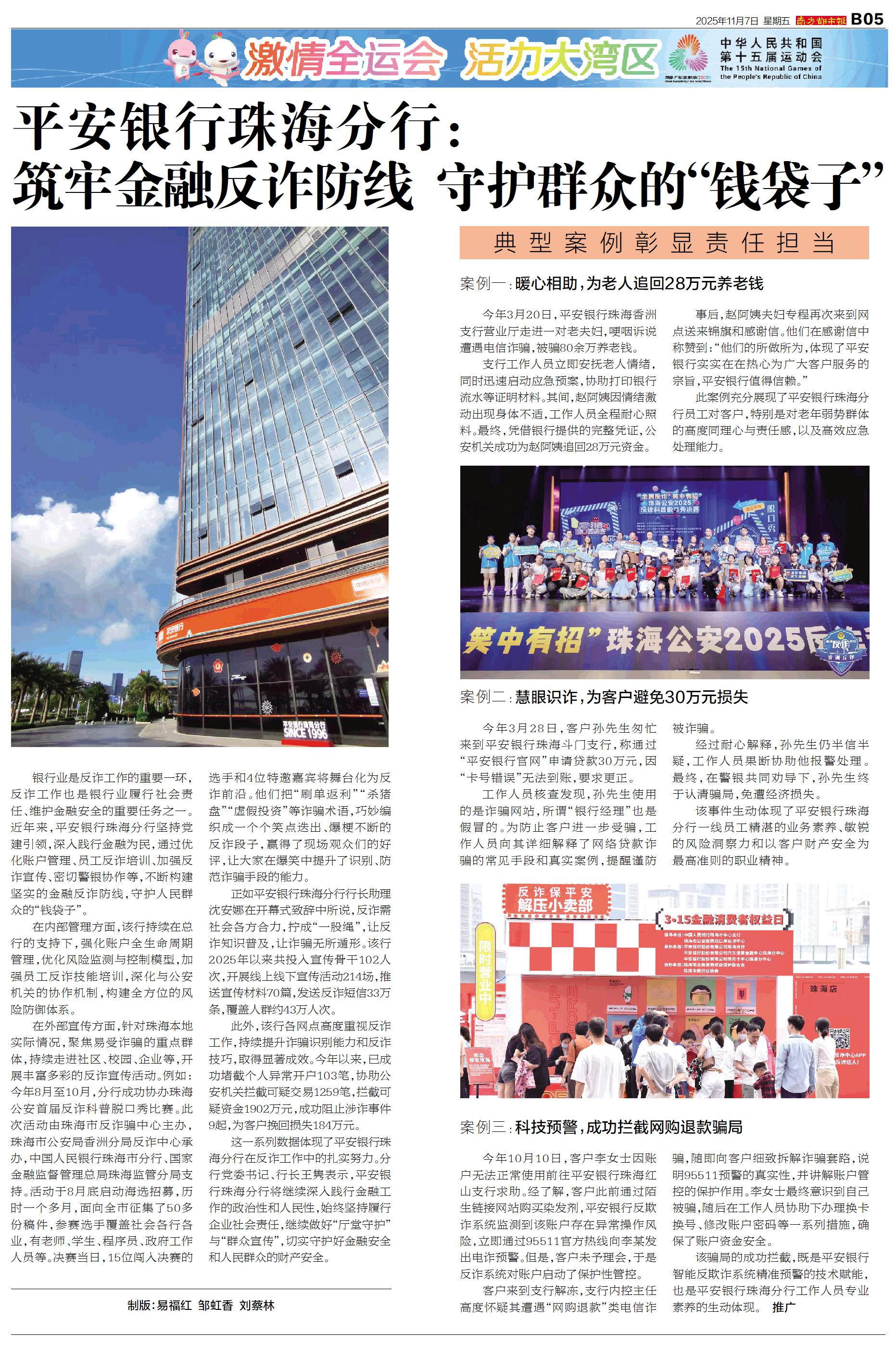 平安银行珠海分行:筑牢金融反诈防线 守护群众的“钱袋子”
