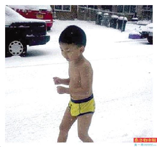 2012年除夕夜,零下13℃的美国纽约街头大雪纷飞,4岁的南京男孩何宜德全身上下仅穿一条黄色小短裤,带着哭腔哀求拿着摄像机的父亲何烈胜“抱抱我”,但只得到回应“加油加油”。视频最后,在父亲要求下,他还在雪地中做了一个俯卧撑。
