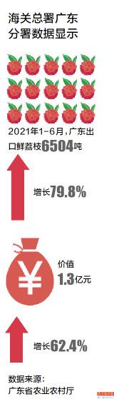 中国土生土长,渊源悠久,专家称荔枝“有着能够感知、触摸的历史”。特色农产品形成可复制、推广的出口模式和经验,将优化农产品贸易布局。海关总署广东分署数据显示,今年1-6月,广东出口鲜荔枝6504吨,同比增长79.8%;价值1.3亿元,同比增长62.4%。