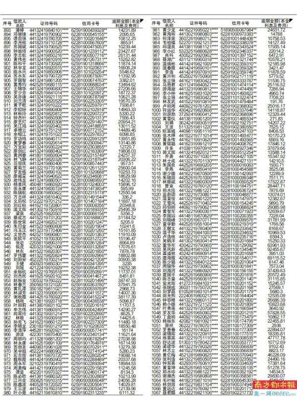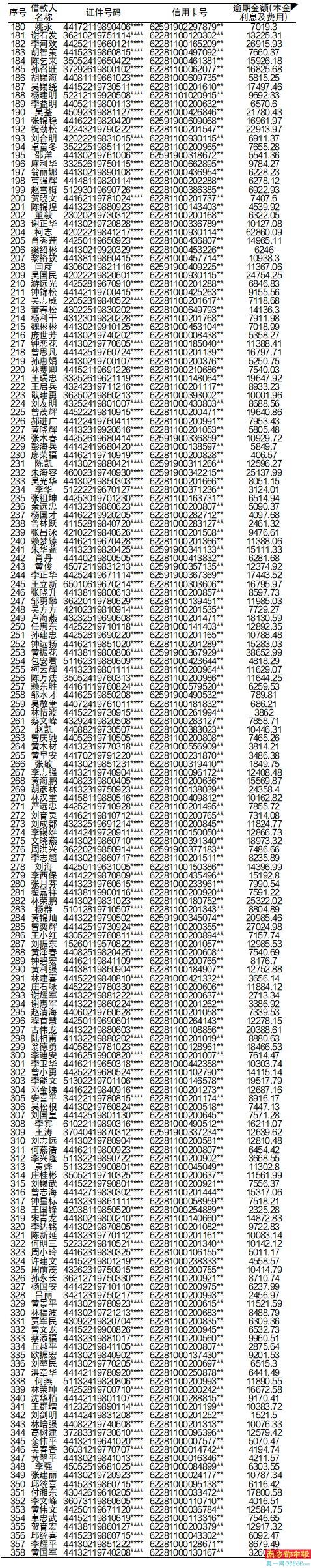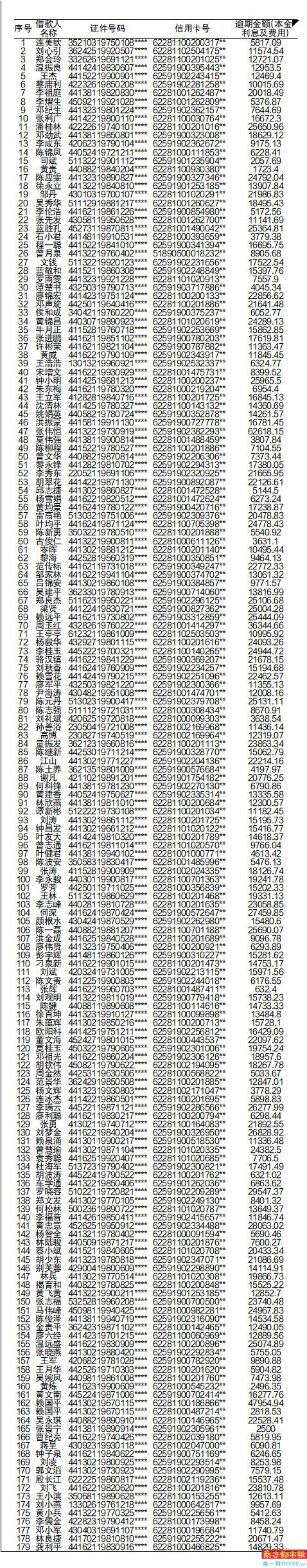 下列持卡人由于未按其与中国邮政储蓄银行股份有限公司惠州市分行签订的《中国邮政储蓄银行人民币信用卡(个人卡)领用合约》约定按期还本付息,逾期己超过一年(包含一年),根据《中华人民共和国民法典》及相关法律、法规的规定,予以公告。