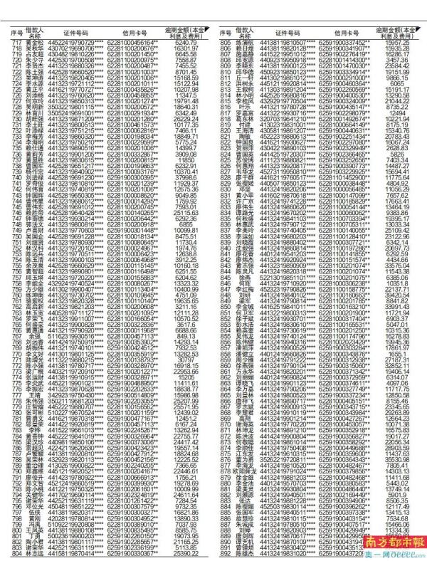 注:下列逾期金额(含本金、利息及费用)计算至2022年7月31日,持卡人以实际履行时根据合同的约定及中国人民银行的相关规定计算的数额为准,除特别注明外,均指人民币,单位为元。