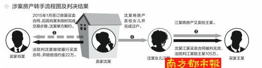 判决还称,经查,从沈某处购房的江某实为沈某女儿,沈某、江某知晓上述合同存在,且其交易存很多不符一般房屋买卖交易习惯的情形,认定两人签订买卖合同存在恶意。最终法院判定沈某与江某的买卖合同无效,应将涉案房产恢复至沈某名下。