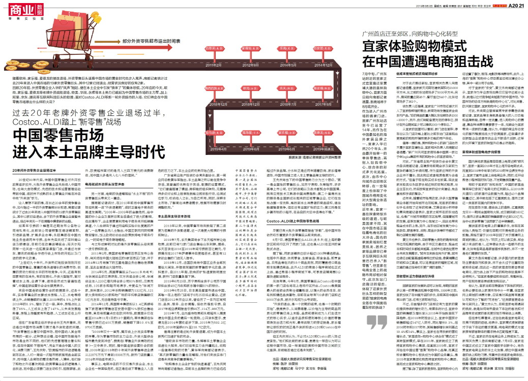 “外资的退出,是一个时期的结束,也是一个时期的开始”,裴亮表示,从消费端看,以价格为主导的商品同质化的零售已走上末路,品质和便利成为人们生活方式的核心诉求,以追求品质和便利等核心价值的零售商焕发出活力和光彩,最有说服力的旁证就是,家乐福转让股权的时刻正是外资折扣店ALDI和Costco在中国开店的时刻。