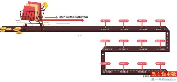 让人意想不到的是,在长达20余年的竞争磨合中,如今超过一半的外资零售商纷纷败退,南都记者统计了过去20年来进入中国市场的19家外资零售巨头,其中12家已经退出,余下的外资零售企业虽暂未退出,但近年来无一不在调整中摸索新的出路。