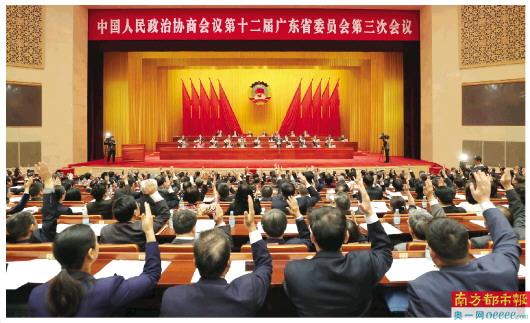 南都讯 记者贺蓓 通讯员高杰 申长江 中国人民政治协商会议第十二届广东省委员会第三次会议圆满完成各项议程,1月15日上午在广州闭幕。会议号召,全省政协各参加单位、各级组织和广大委员要高举习近平新时代中国特色社会主义思想伟大旗帜,在中共广东省委坚强领导下,胸怀“两个大局”,为国履职、为民尽责,为推动广东开创新时代改革开放和现代化建设新局面贡献更多智慧和力量。