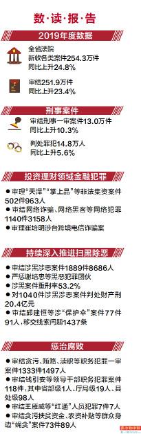 南都讯 在1月15日召开的广东省第十三届人民代表大会第三次会议上,广东省高级人民法院院长龚稼立代表该院作年度工作报告。数据显示,广东全省法院去年新收各类案件254.3万件,审结251.9万件,同比分别上升24.8%和23.4%。