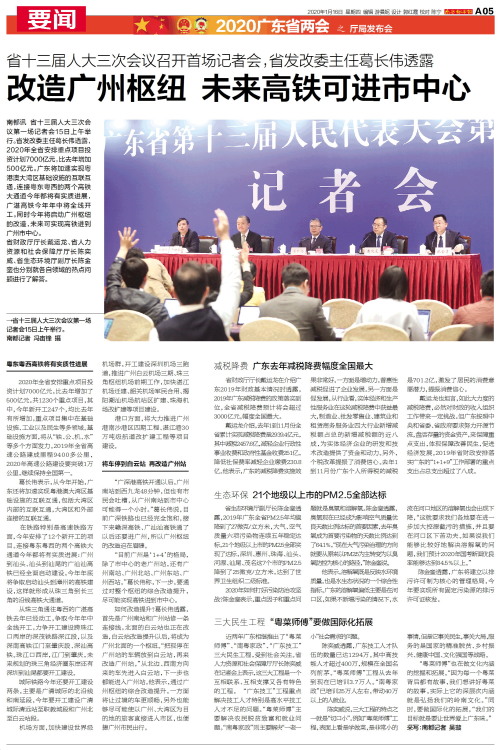 省十三届人大三次会议第一场记者会15日上午举行。 南都记者 冯宙锋 摄 南都讯 省十三届人大三次会议第一场记者会15日上午举行。省发改委主任葛长伟透露,2020年全省安排重点项