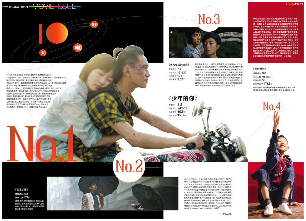No.1 《少年的你》豆瓣评分:8.3评分人数:741258热搜次数:103次国内票房:15.32亿从《七月与安生》到《少年的你》是青年导演选题的大胜利。《七月与安生》证明了曾国祥不只是明星之子,还是