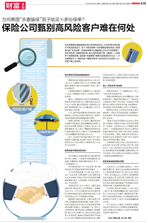 去年底泰国杀妻骗保案引发社会各界的关注。为何该男子能在妻子不知情的情况下,买下十数份保单?为何频繁投保却未进入到保险业的“关注名单”,投保的保单可以覆盖高达3000万元的保额?在外界看来,加强资源共享