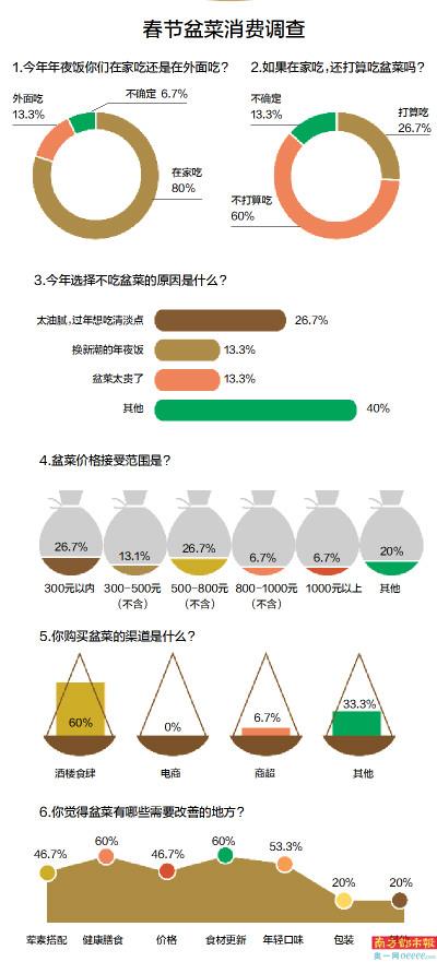 为了解盆菜食材消费现状,南都记者联合南都热点站站队发起了主题为《今年年夜饭,你们家还打算吃盆菜吗?》的问卷调查,调查结果显示,67%的受访者表示今年年夜饭不备盆菜,其中一个原因就是为了健康,觉得盆菜太油腻。