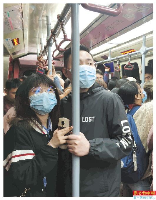 广州地铁上出行的市民戴口罩的越来越多。 南都记者 邹卫 摄