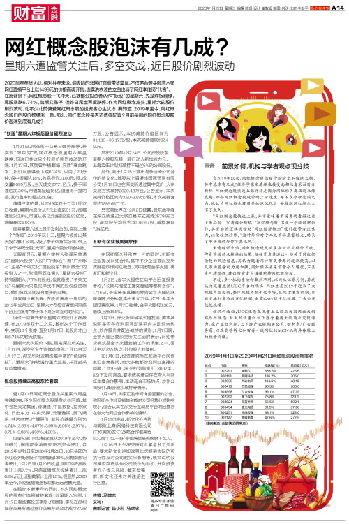 2020鼠年年货大战,相对往年来说,最吸睛的非网红直播带货莫属。不仅茅台等头部酒水在网红直播平台上以1499元的价格高调开售,连卖洗衣液的立白也请了网红李佳琦“代言”。在此背景下,网红概念股一飞冲天,