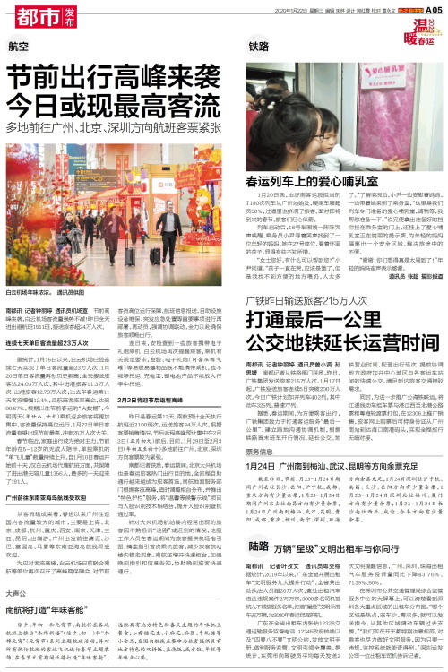 铁路1月20日晚,由济南客运段担当的T180次列车从广州站始发,硬座车厢超员56%,过道里也挤满了旅客。面对即将到来的春节,旅客们归心似箭。列车启动后,16号车厢被一阵阵哭声唤醒,乘务员小尹寻着哭