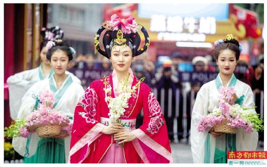 西湖花市上“花仙子”送花。 南都记者 谭庆驹 冯宙锋 摄