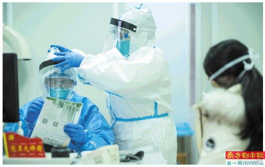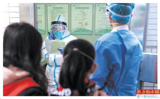 为了合理利用资源,广东省第二人民医院一直采取门诊分诊制度,在特殊时期尤显重要。大部分感冒和发烧的患者经过初步筛选,被安排到内科门诊进行诊治,只有真正具有风险的患者才会进入发热门诊区。即便如此,很多患者只要感冒发烧就来求诊,医院的压力还是很大,这就是整个医院都在轮换着支援发热门诊的原因。