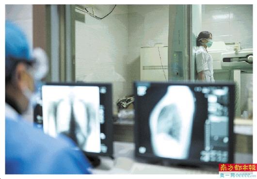 医护人员为就诊者拍摄X光。