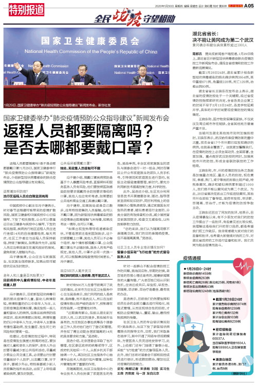 返程人员都要隔离吗?是不是去哪都要戴口罩?1月29日,国家卫健委举行“肺炎疫情预防公众指导建议”新闻发布会,介绍新型冠状病毒感染的肺炎疫情预防公众指导建议有关情况。返程潮如何防控?流行区返程人员应自我