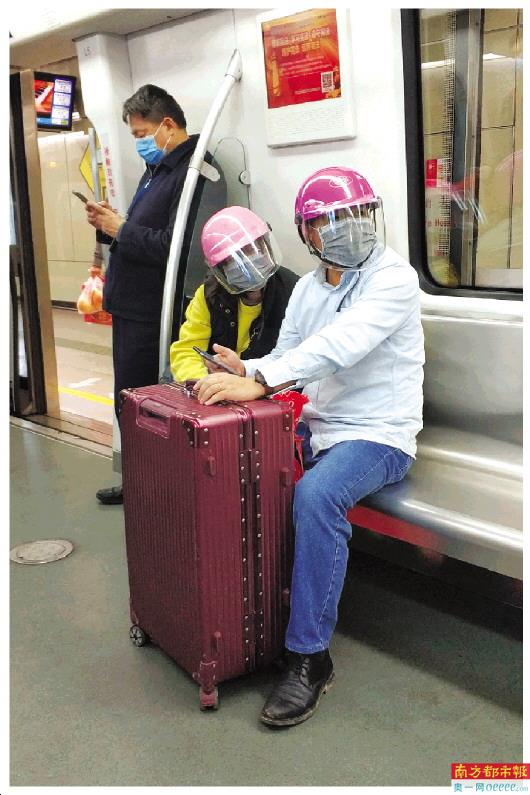 1月29日下午,广州地铁六号线里的两位乘客,与众不同。南都记者 谭庆驹 摄