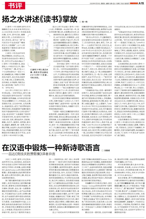 2011年11月扬之水《〈读书〉十年》刚出版,一时好评如云,因为三联书店出版的《读书》杂志在广大知识型读者群中享有盛誉,1979年创刊的《读书》这本薄薄的三十二开的杂志,以其思想的开放、议论的中肯、文风的隽永、深遂的观念,成为了知识界和读书界的风向标,和其倡导的“给喜欢看书的而不是给做学问的人办的《读书》”主旨,给当年的广大读者做了很好的引导读书作用。在《读书》作者中有一大批大家、名家,诸如金克木、吕叔湘、黄裳、冯亦代、蓝英年、徐梵澄、谢兴尧、施蛰存、唐振常、周一良等,均为之撰文写稿,这些深入浅出的名家随笔作品,深受读者的喜爱,扬之水作为编辑适时的约稿也是功不可没,这在《〈读书〉十年》中有不少记载。