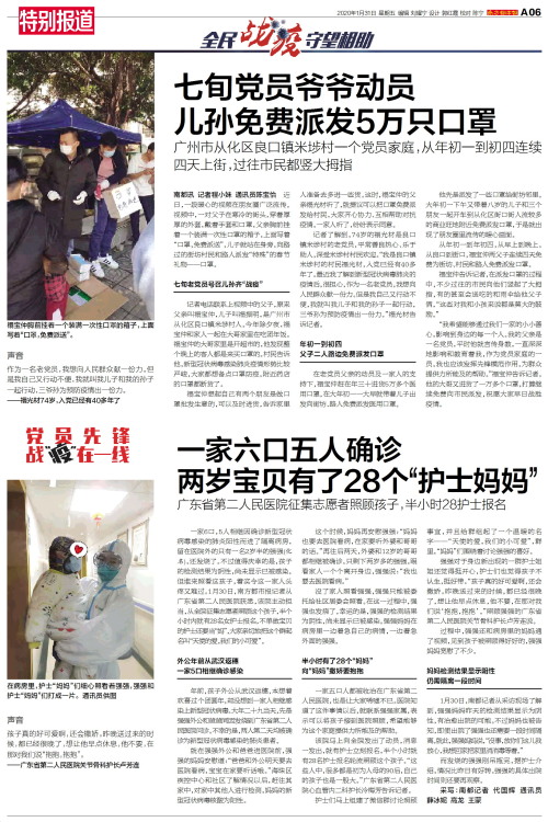 七旬党员爷爷动员儿孙免费派发5万只口罩