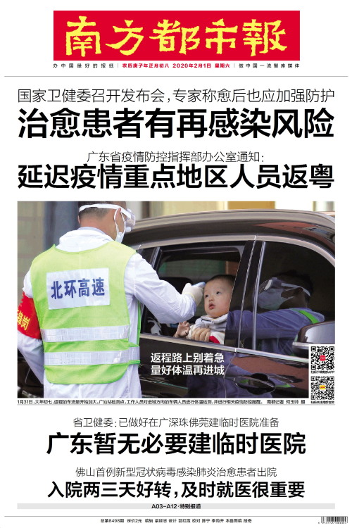 1月31日,大年初七,返程的车流量开始加大。广汕站检测点,工作人员对进城方向的车辆人员进行体温检测,并进行相关疫情防控提醒。 南都记者 何玉帅 摄