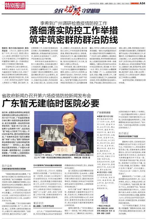 南都讯 南方日报记者徐林 通讯员岳宗 1月31日,省委书记李希到广州市,深入社区、高速公路出入口,就深入贯彻落实习近平总书记关于疫情防控工作的重要讲话和重要指示精神,进一步落细落实防控工作举措进行调研