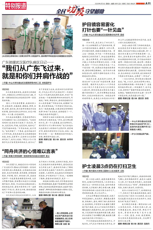 1月30日今天清晨7点,驰援武汉汉口医院的广东省医疗队暨南大学附属第一医院的专家团队进入隔离病房,大家接班后分组查房、床边仔细观察、询问病情、安慰鼓励患者、开医嘱、阅片、新收病人等,在查房过程中一位危