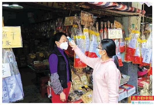 十九涌码头商家和顾客都被要求戴上口罩,进出也需测量体温。 通讯员供图