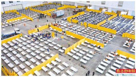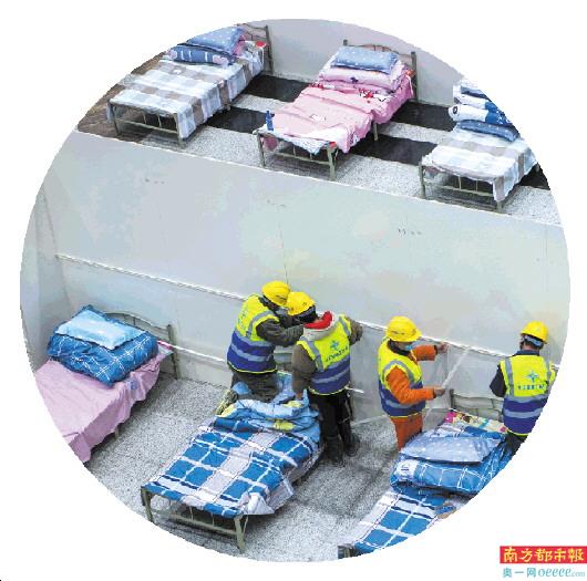 在可容纳1100张床位的武汉体育中心,其电路安装及部分医用集装箱由承建火神山医院土工布、防护膜及污水处理站基础施工任务的中建三局负责。南都记者从中建三局获悉,自2月4日晚接到该“方舱医院”建设任务后,建设人员通宵施工作业,从人员集结到位到完成,用时不到10小时,“边设计,边施工,边调整”。