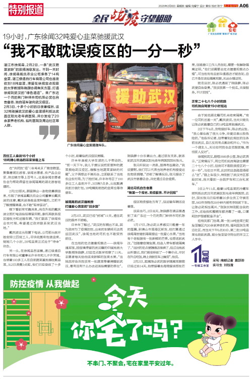 徐闻到武汉,路程1500多公里。陈必武表示,“正常情况下,两位司机轮流驾驶也需要二十七八个小时,但我可不敢耽误疫区的一分一秒”。与往日不同,此时的这条路显得那么“空”,“路上车很少,特别到了武汉市区那段时间,我只看到一台救护车和三台私家车。”
