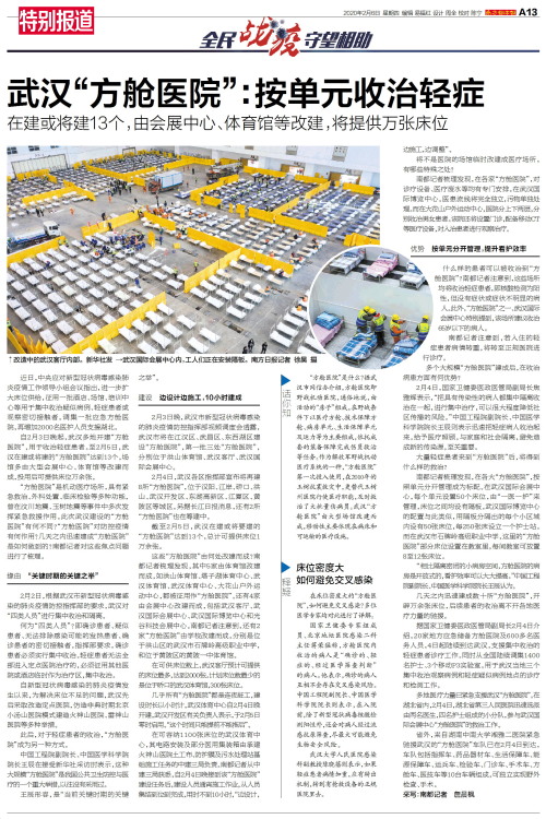 武汉“方舱医院”:按单元收治轻症