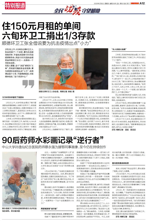 2月2日上午,63岁的北滘环卫工人张全僧做了一个决定,要为抗击疫情做点事,于是他决定捐1000元给顺德慈善会。而这1000元是他全部现金存款的三分之一,也是他一个月的生活费。在别人眼里,这个“决定”被