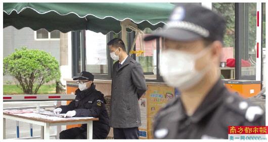2日上午,广州市寺右新马路,达道南社区入口处有工作人员严格把关。 南都记者 梁炜培 摄