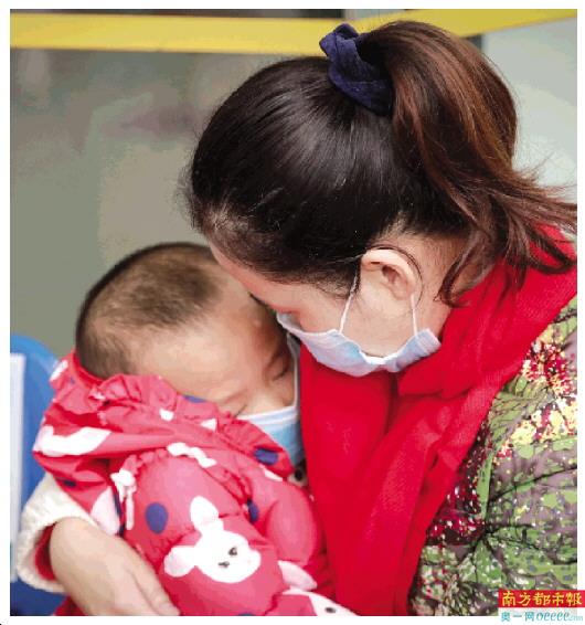 患者李芳鸿(化名)抱着2岁小儿子,母子俩已经数日未见。