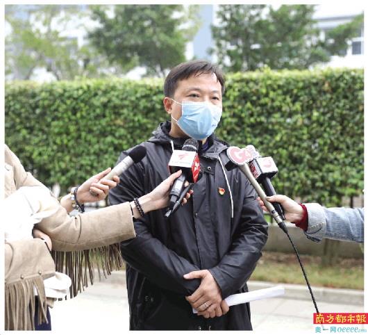 南沙区珠江街党工委副书记、办事处主任林泽在介绍辖内复工复产情况。 南都记者 邹卫 摄