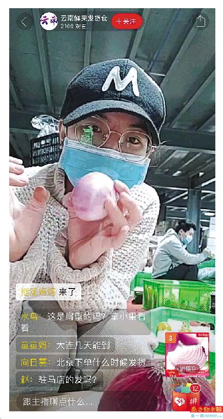 仓库内终于忙碌起来。公司内在岗的10人全部参与打包发货,专门培养的直播人员困在了广东,王耀忠的老婆临时顶上。2月11日,南都记者在其店铺直播间看到,与平时常见的直播不同,直播间很简陋。既没开美颜灯,也没专门的直播台。女主播边忙着为洋葱打包,边扭头回答网友刷屏的提问。