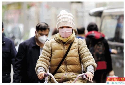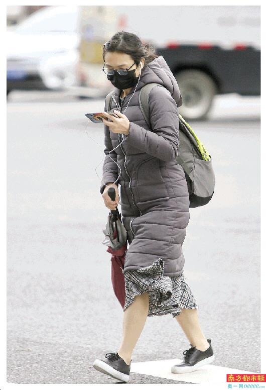 2月16日,广州大道北,行人穿上长款冬衣。 南都记者 马强 摄